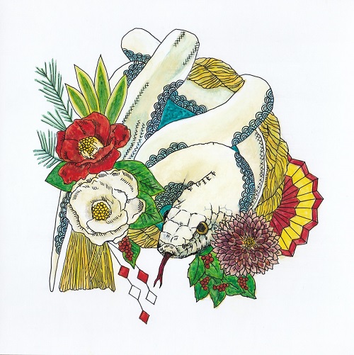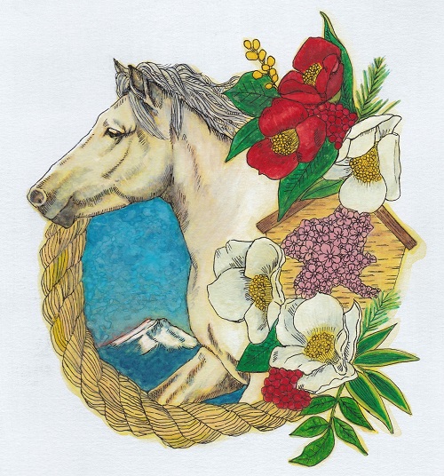 《ゆかしさ》紙、ペン・アクリル・水彩